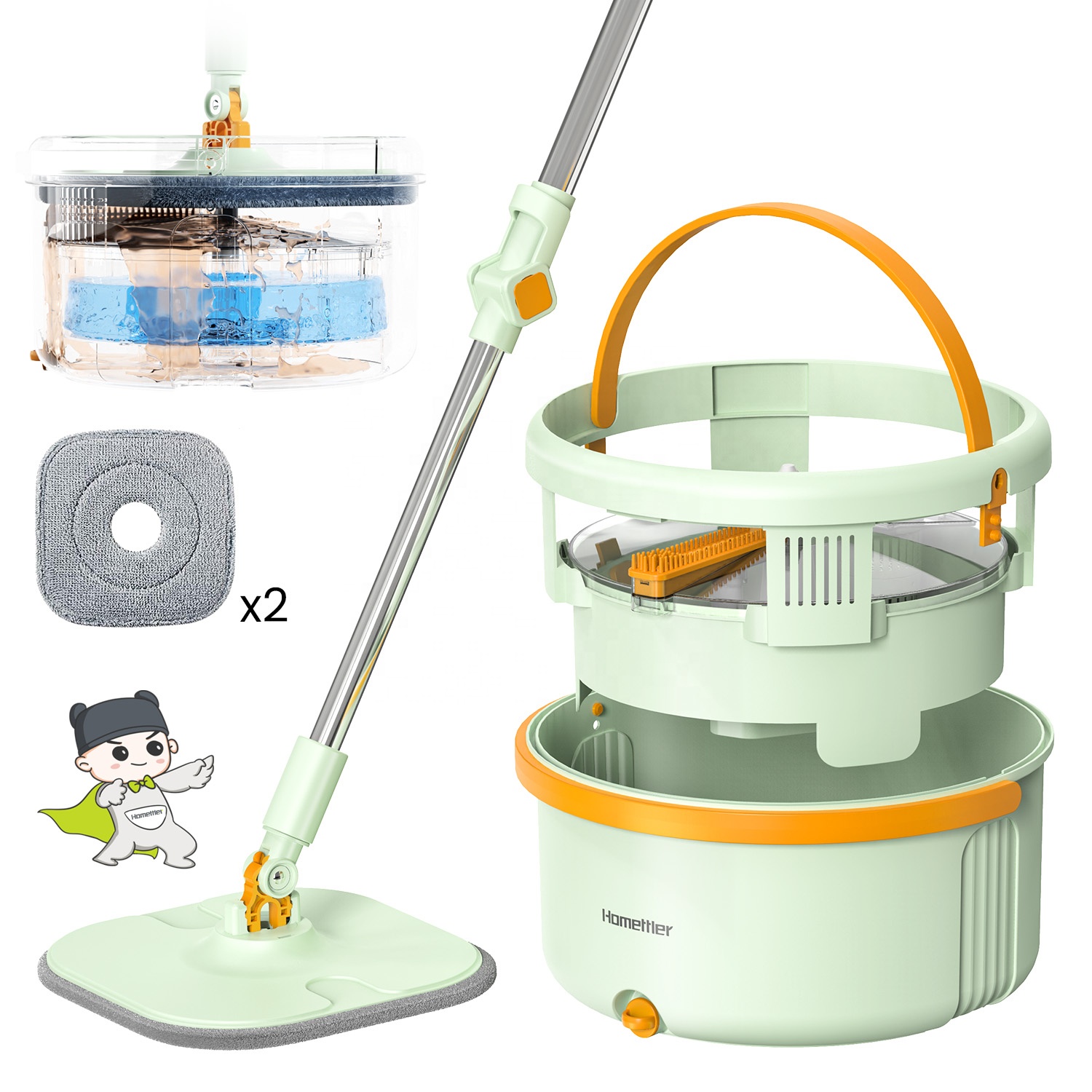 Хометтлер, новый стиль, 2024 чистое и грязное разделение, плоская Швабра для кухни, ведро для ленивой швабры